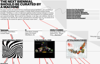 The project makes reference to 'The Next Documenta Should Be Curated by an Artist' (e-flux, 2003) - which questioned the structures of the art world and the privileged position of curators within it – and extends this questioning to machines. Under this overarching concept, two parallel experiments have been realised to date, applying various machine learning techniques (a subset of AI) to ‘curate’ datasets derived from various biennial exhibitions.